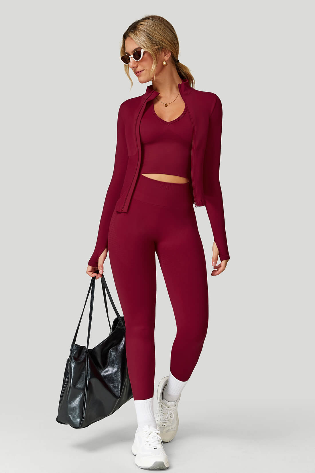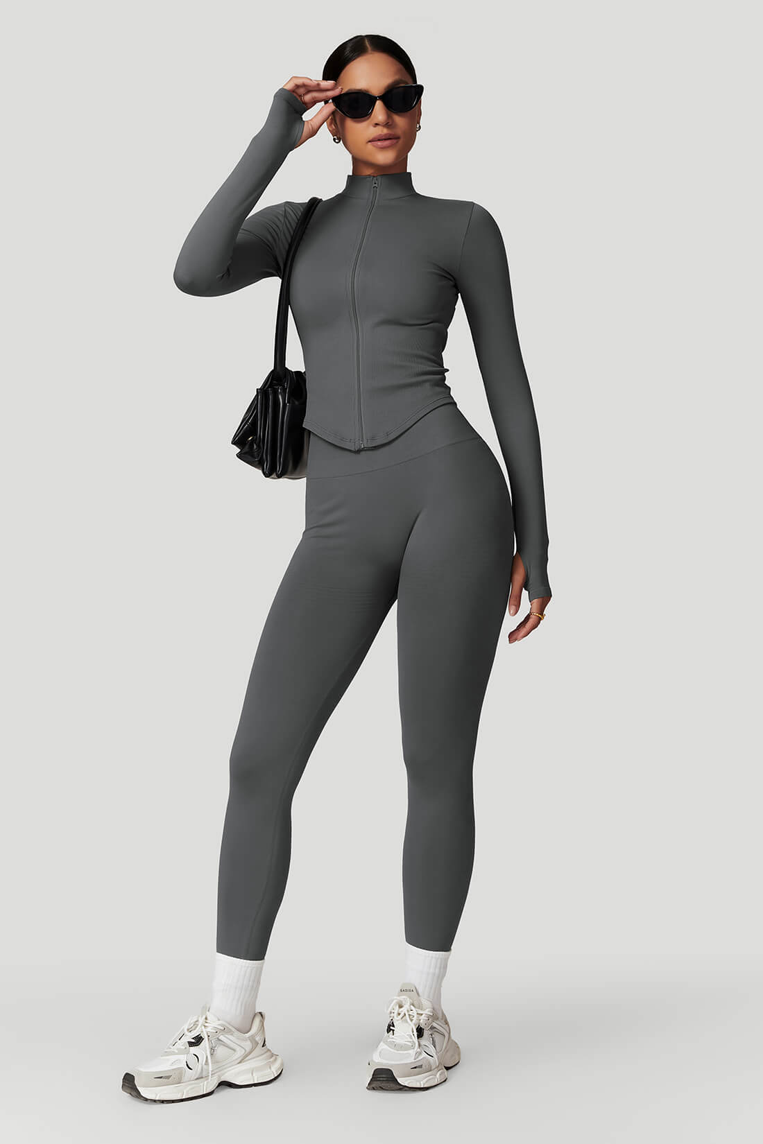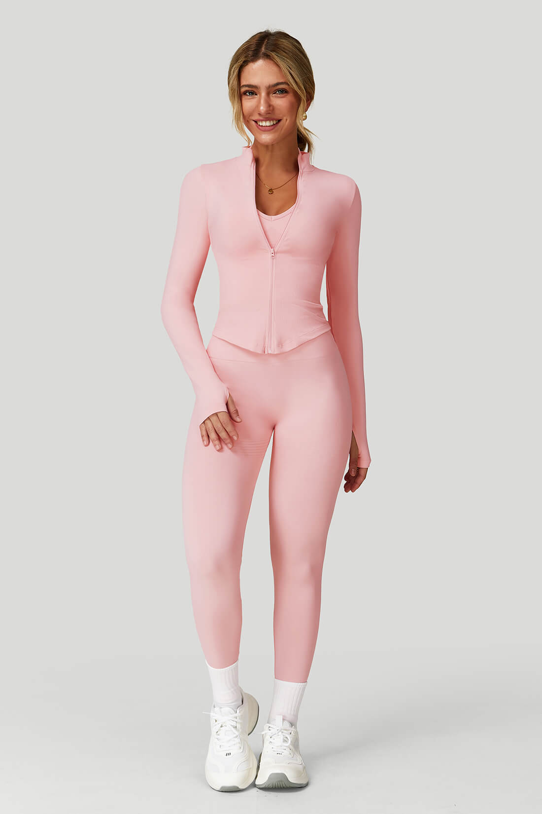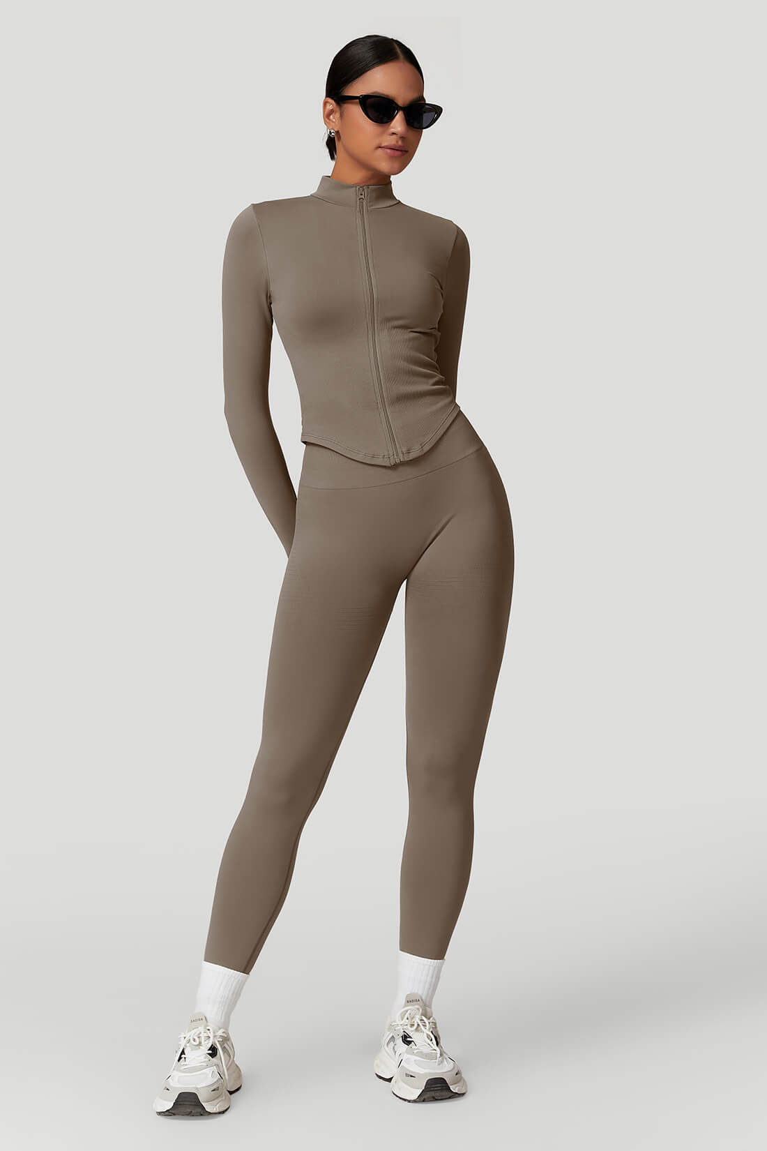 • Features: Nahtloses Design, formende Leggings, stützender Sport-BH, Layer-Jacke