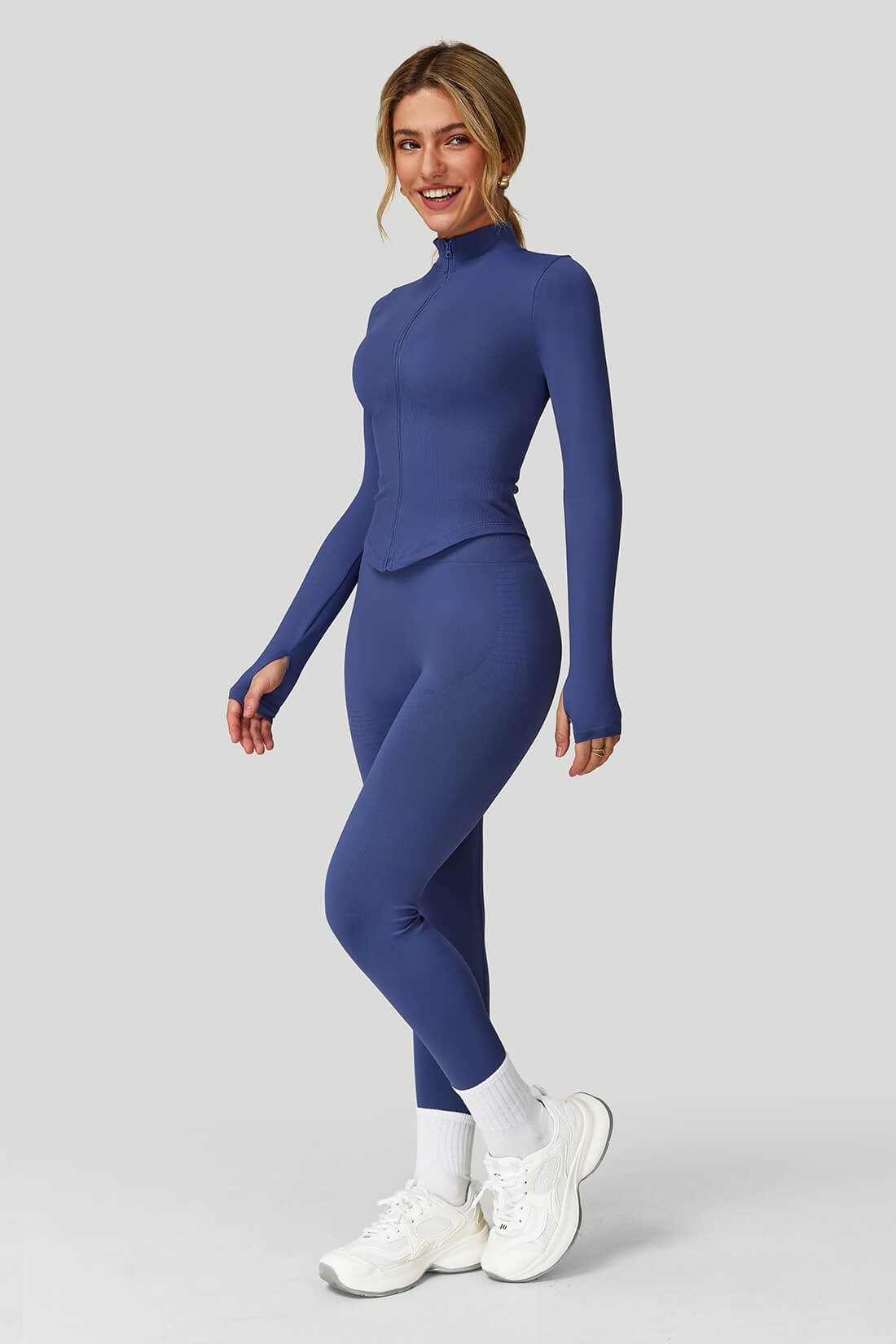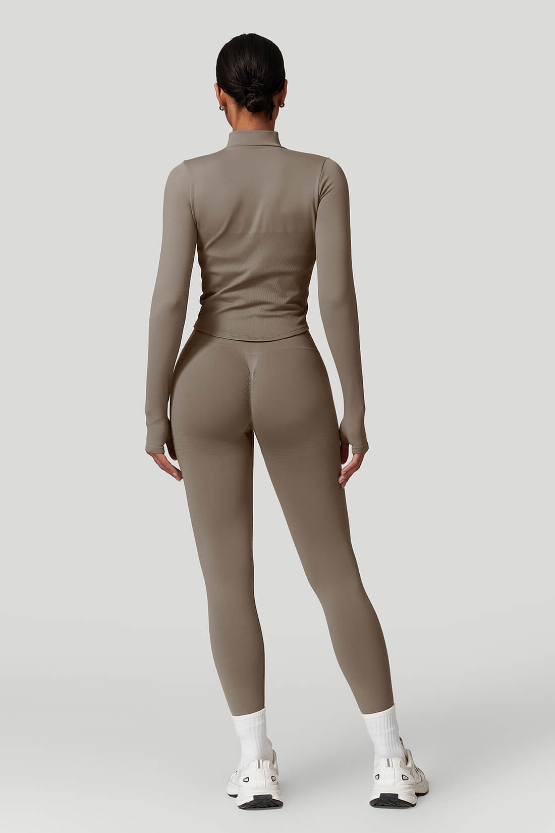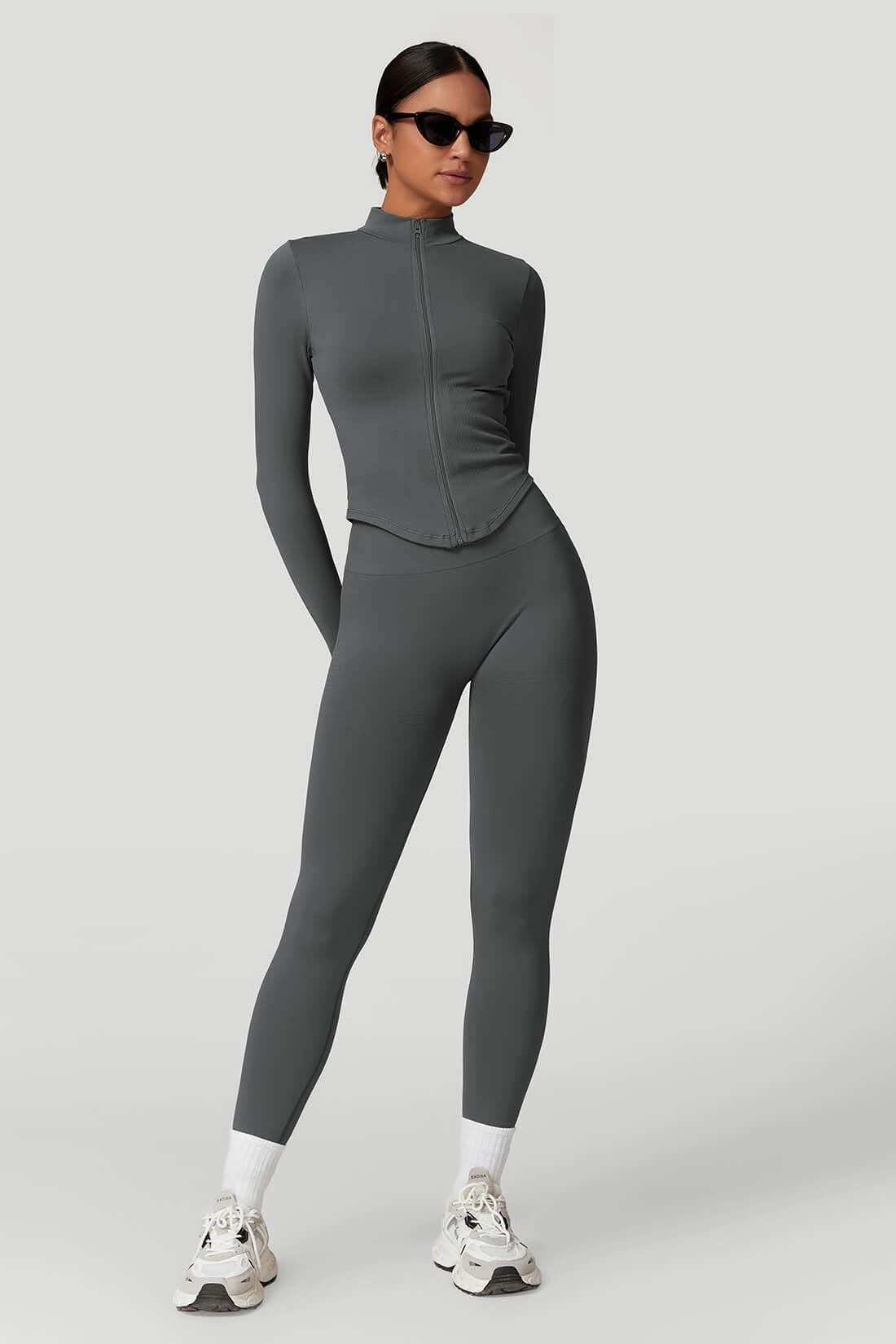 • Features: Nahtloses Design, formende Leggings, stützender Sport-BH, Layer-Jacke