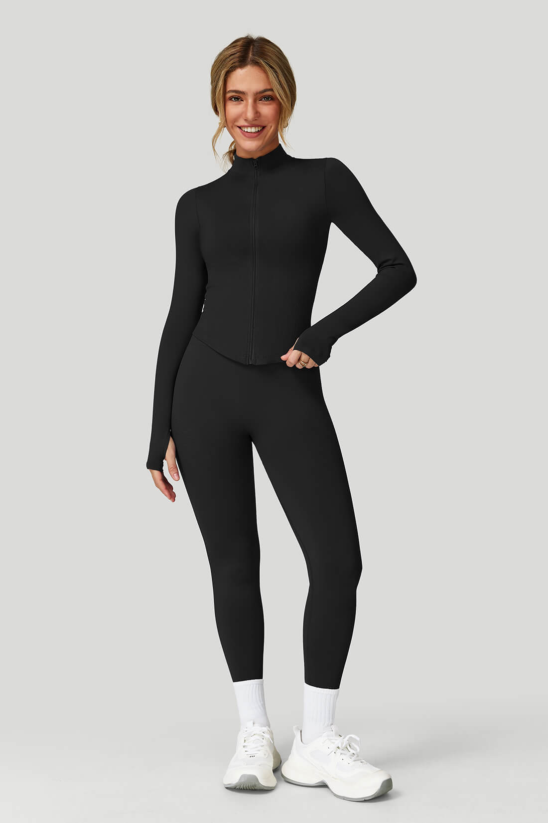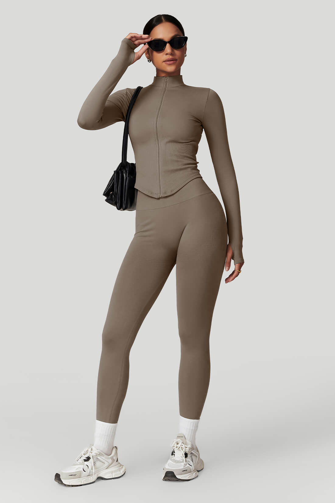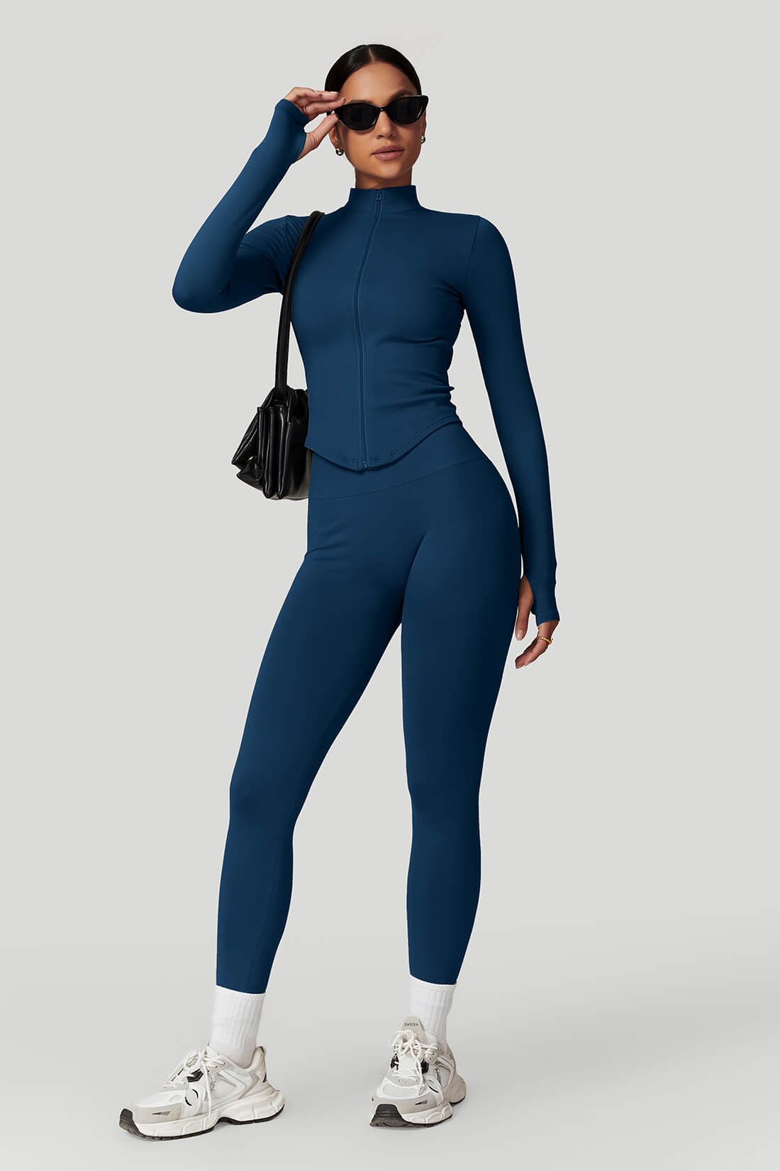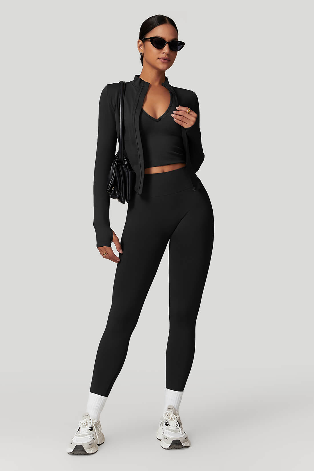 • Features: Nahtloses Design, formende Leggings, stützender Sport-BH, Layer-Jacke