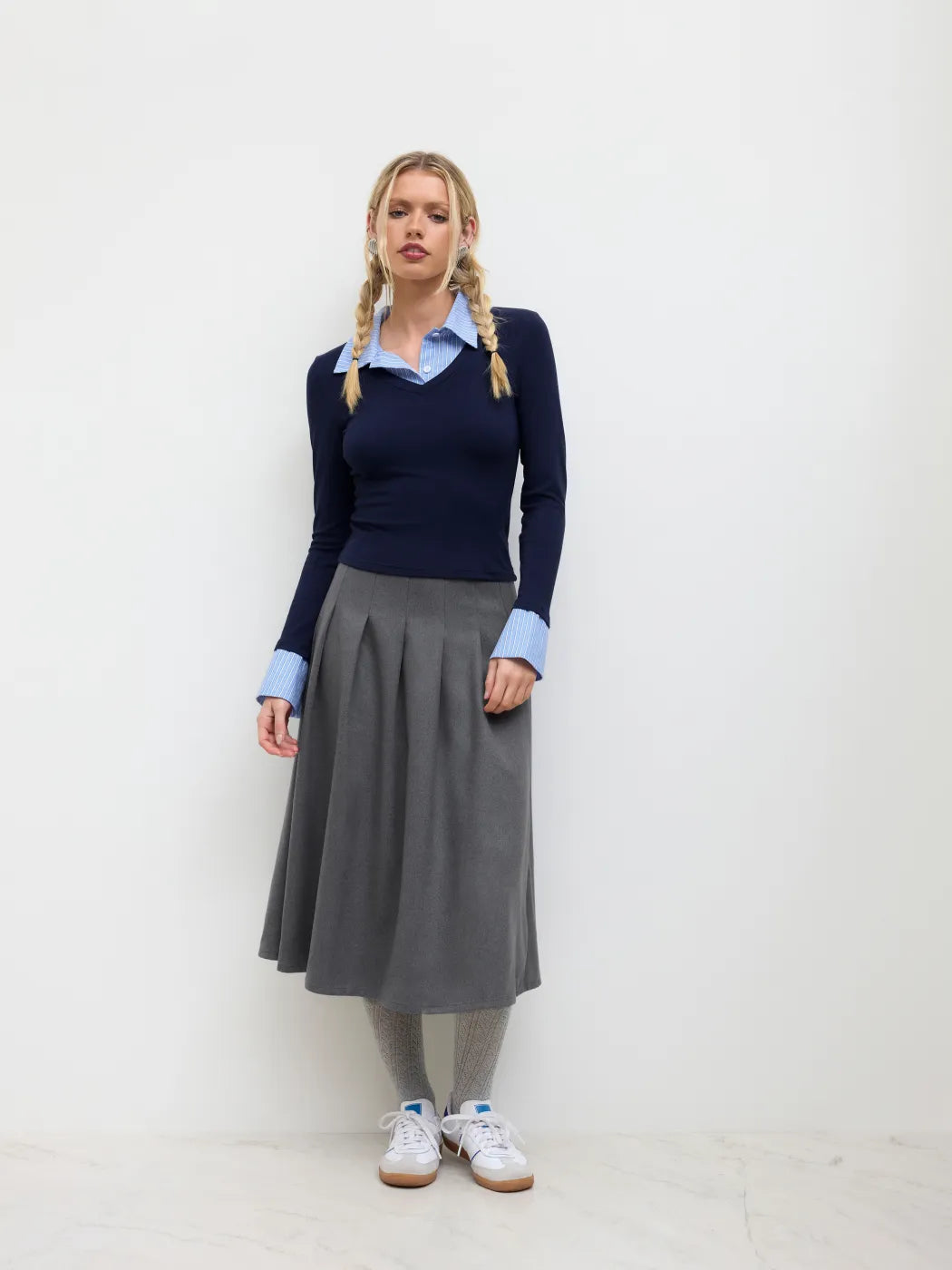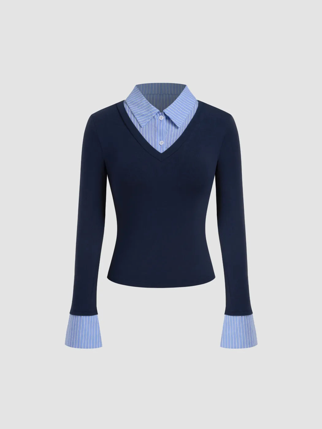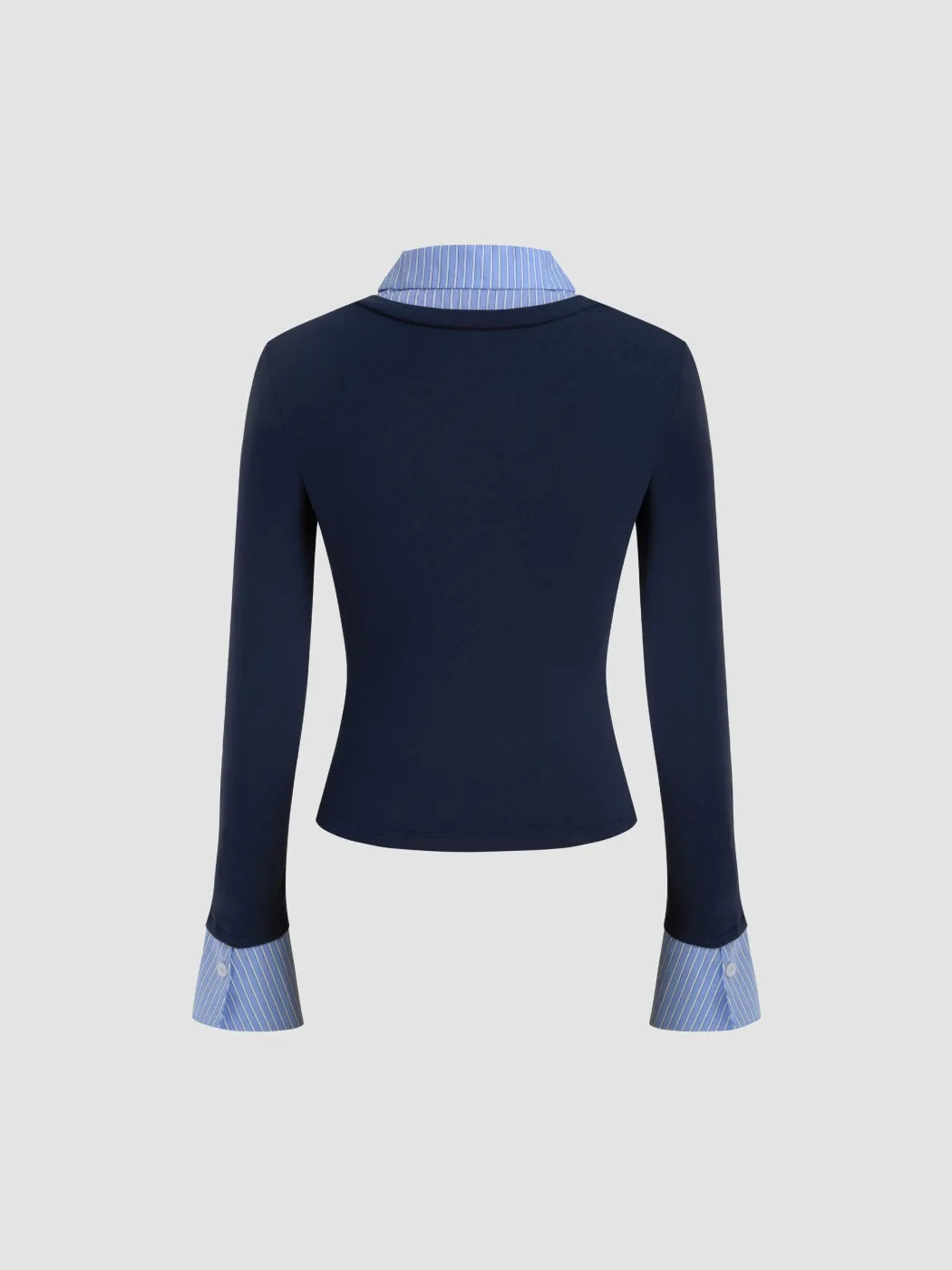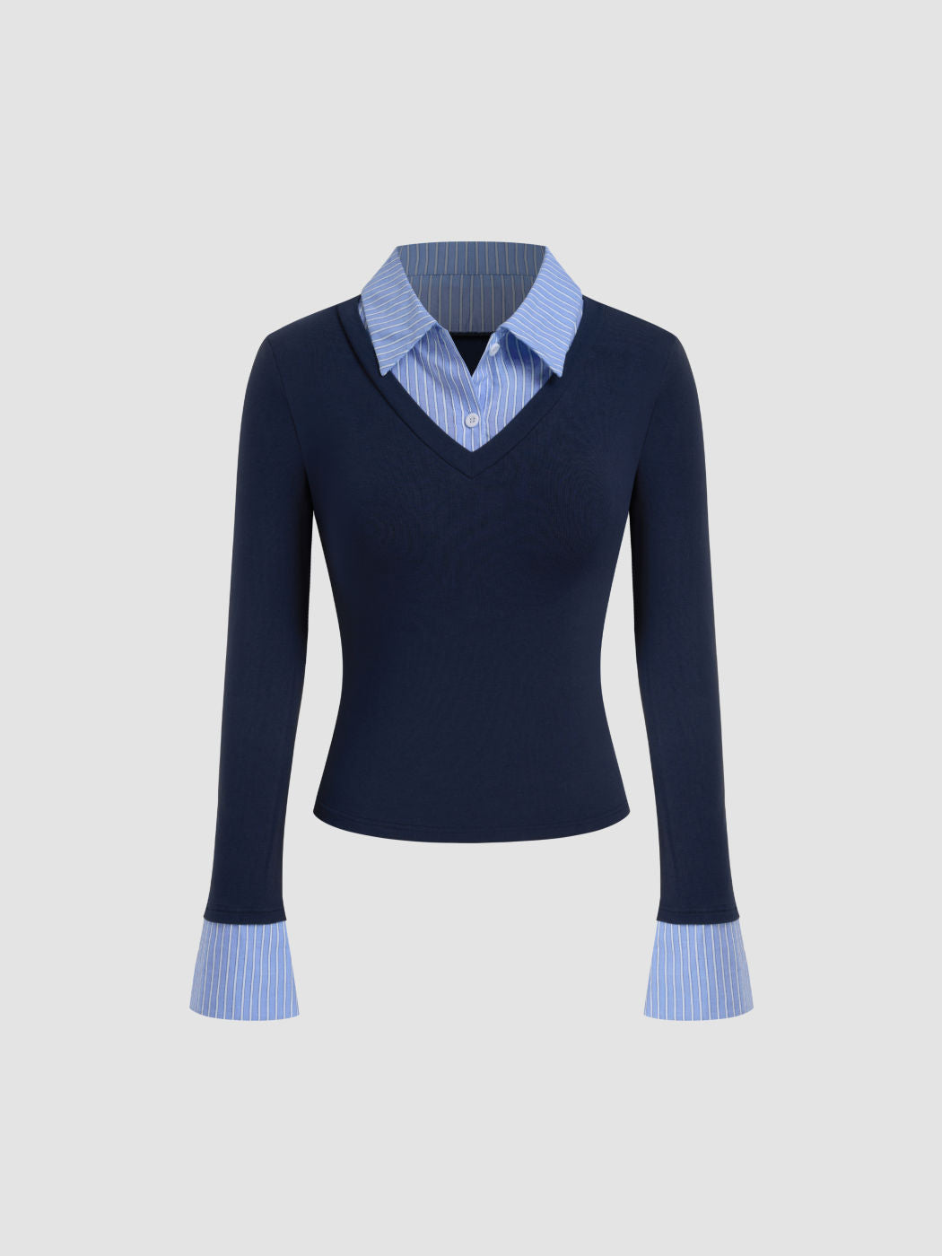 Eleganz trifft Komfort – Das zweifarbige Top mit Kragenstreifen